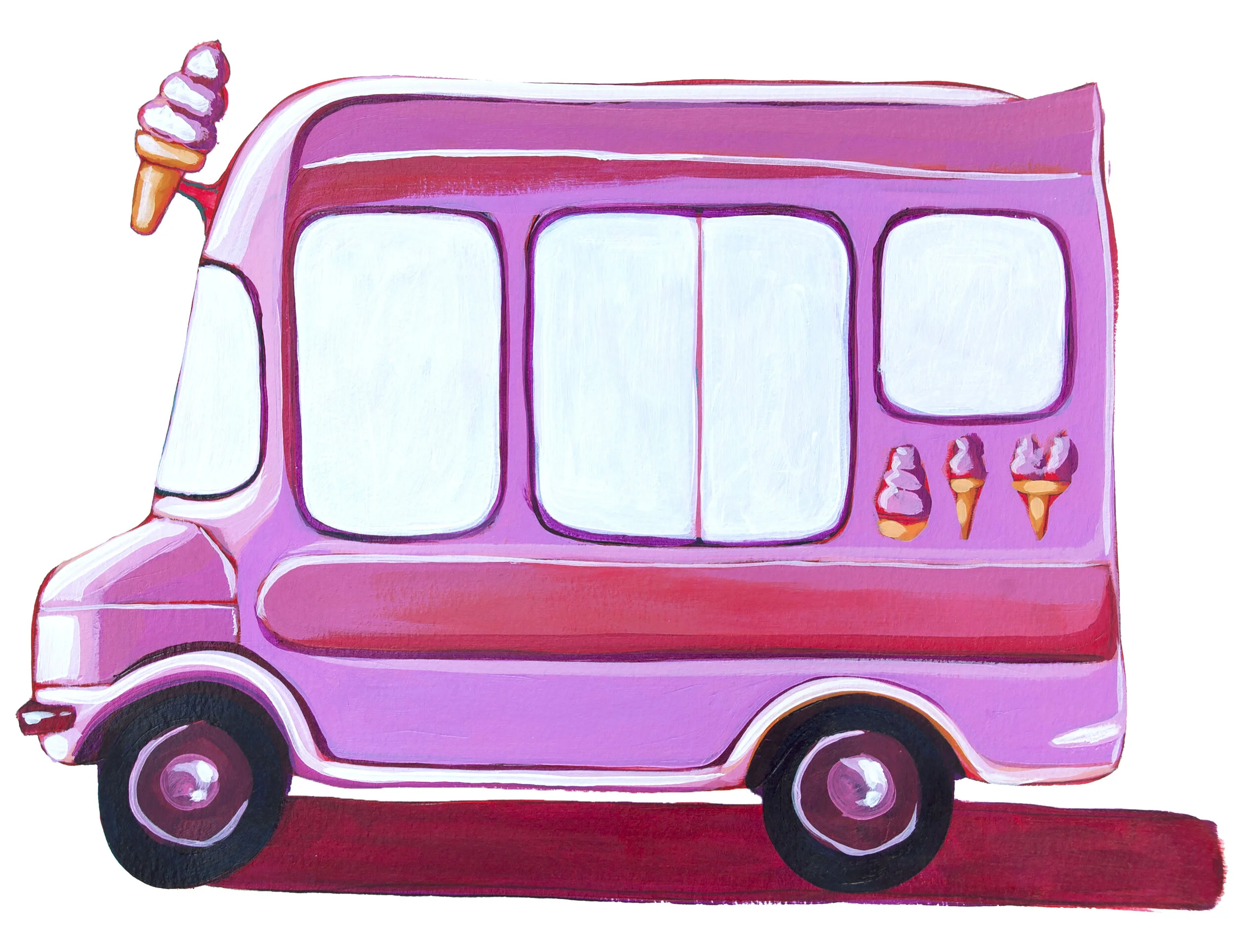 In June 2019 I created a series of paintings inspired by my favorite thing in the world. Hot pinks and purples make each painting glow and evoke memories of hot summer days spent waiting for the ice cream truck to come around the block!